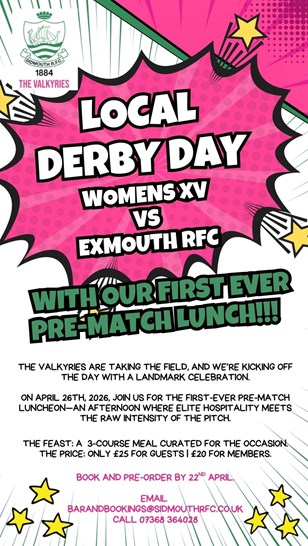 Contact our Bar Manager, Clare, to secure your spot by emailing barandbookings@sidmouthrfc.co.uk or by phoning 07368 364028.