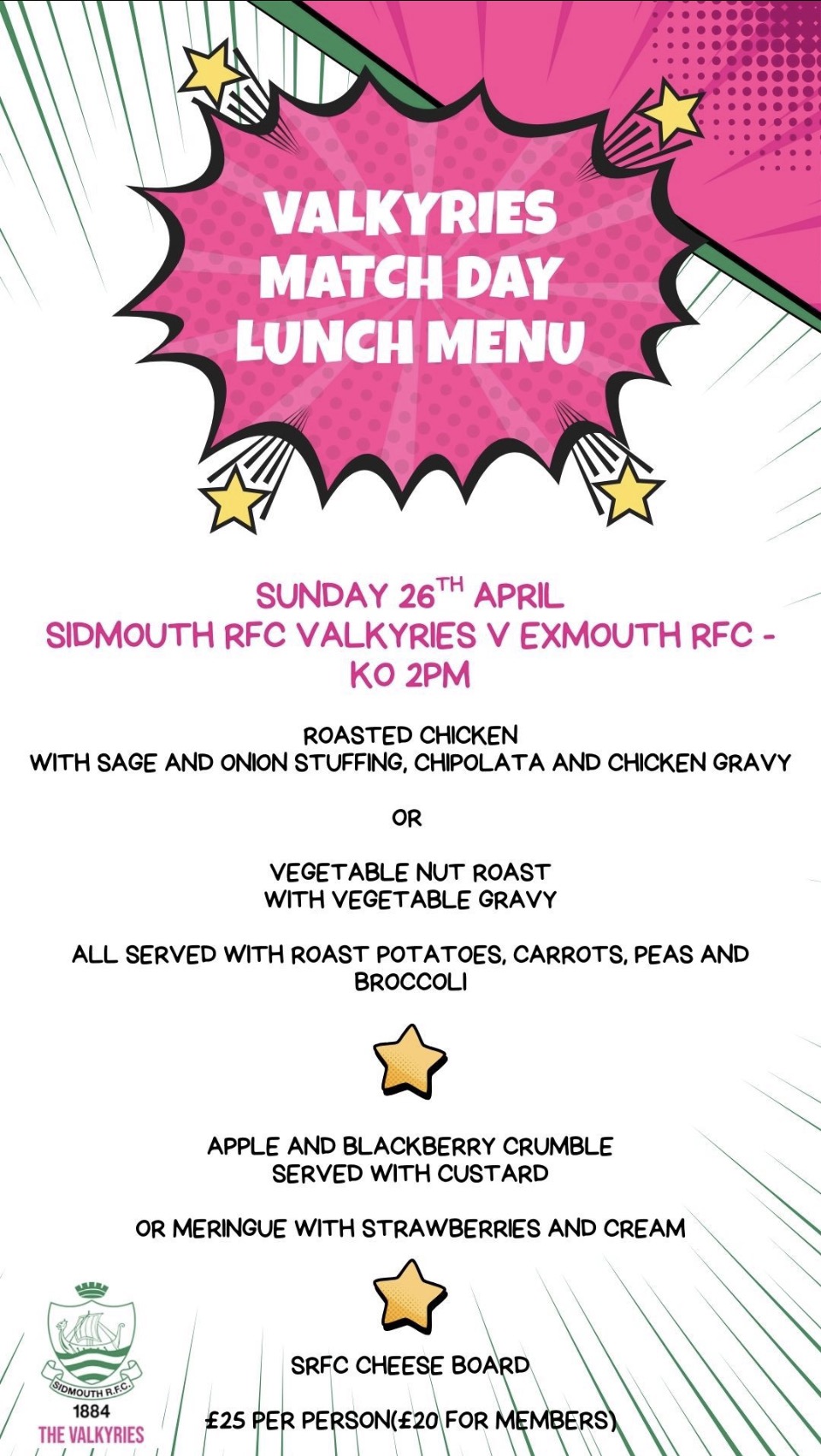 For the very first time, The Valkyries invite you to join them for a pre-match lunch ahead of their last game of the season and local derby versus Exmouth RFC Ladies.